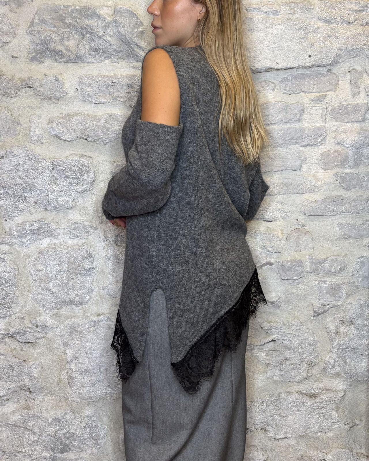 HAVE ONE maglia lunga cut out pizzo grigio