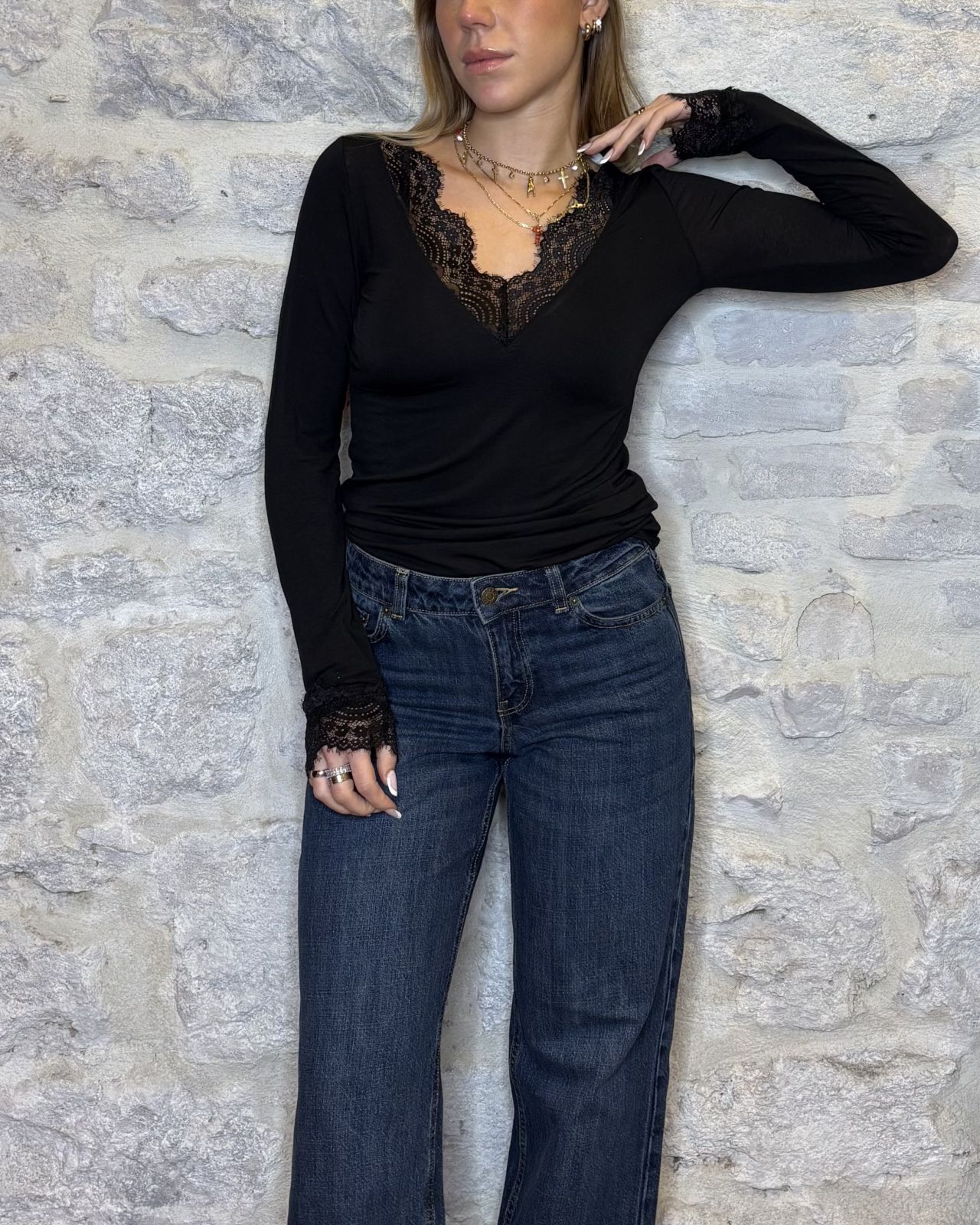 Maglia in cashmere scollo a v con pizzo
