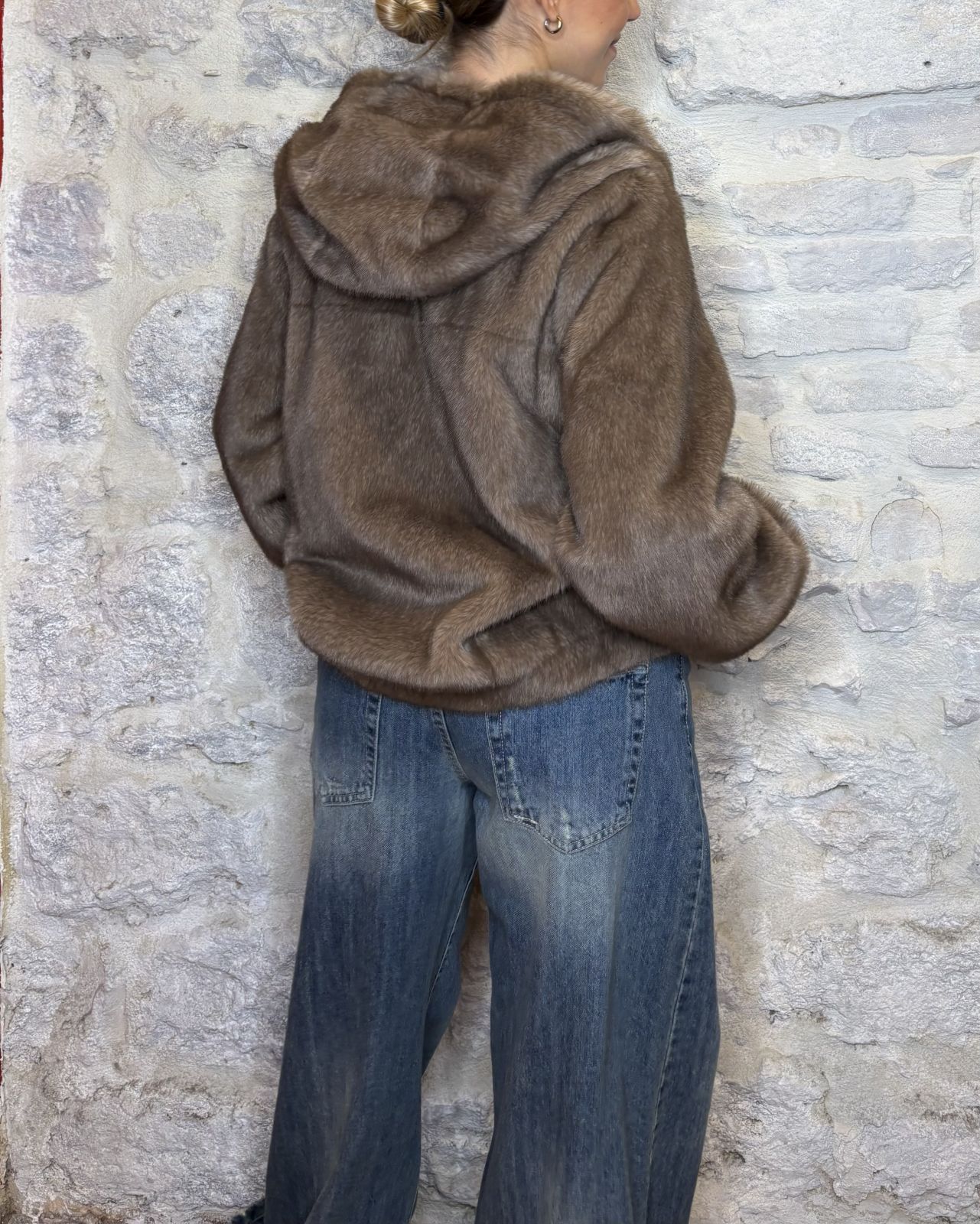 NUMERO6SELECTION pelliccia ecofur con cappuccio fango