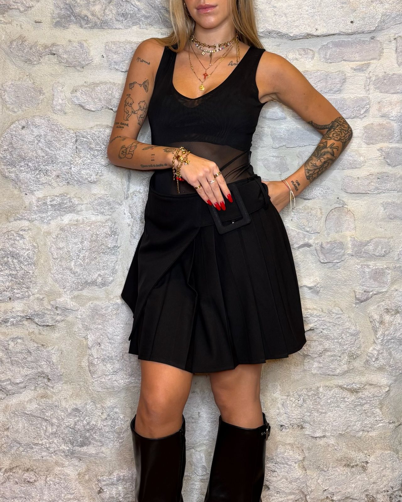 PHILIA LOFT mini gonna a pieghe con maxi fibbia nero