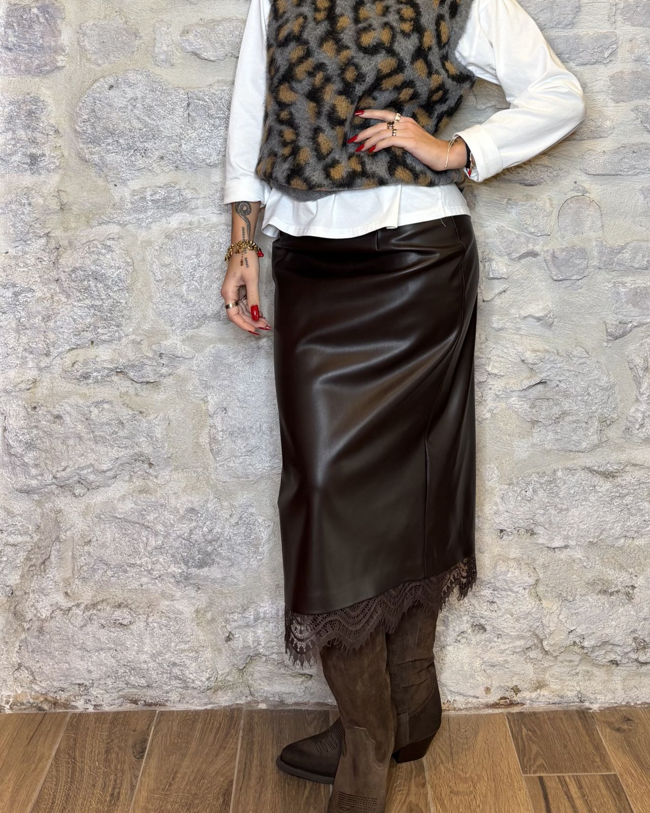 SUSY MIX gonna longuette in ecopelle con pizzo moro