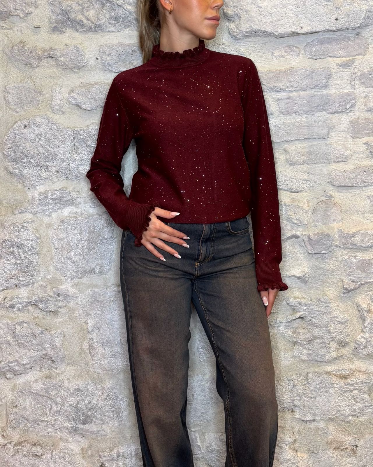 HAVE ONE maglioncino con micro paillettes bordeaux